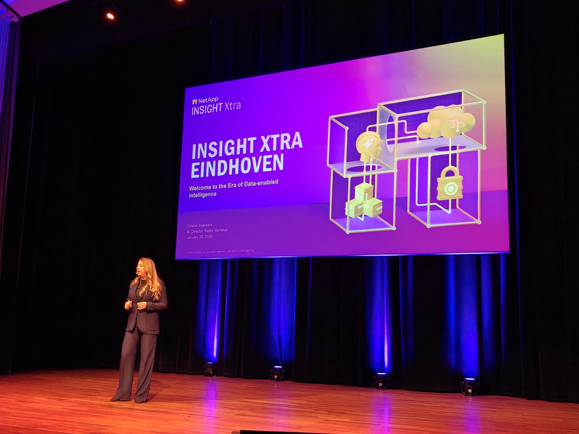Insight Xtra vindt plaats in Evoluon in Eindhoven, een museumgebouw in de vorm van een ufo. De iconische locatie vormt het decor voor een event waar meer dan 600 klanten en partners samenkomen om te praten over data, AI en cyberveiligheid. Tijdens de opening klinkt meteen trots in de zaal. “We hadden meer registraties dan ooit tevoren.” Daarmee pakt NetApp niet alleen uit met de populariteit van het event, maar benadrukt de Europese marktleider ook dat het belangrijke thema’s wil tackelen.